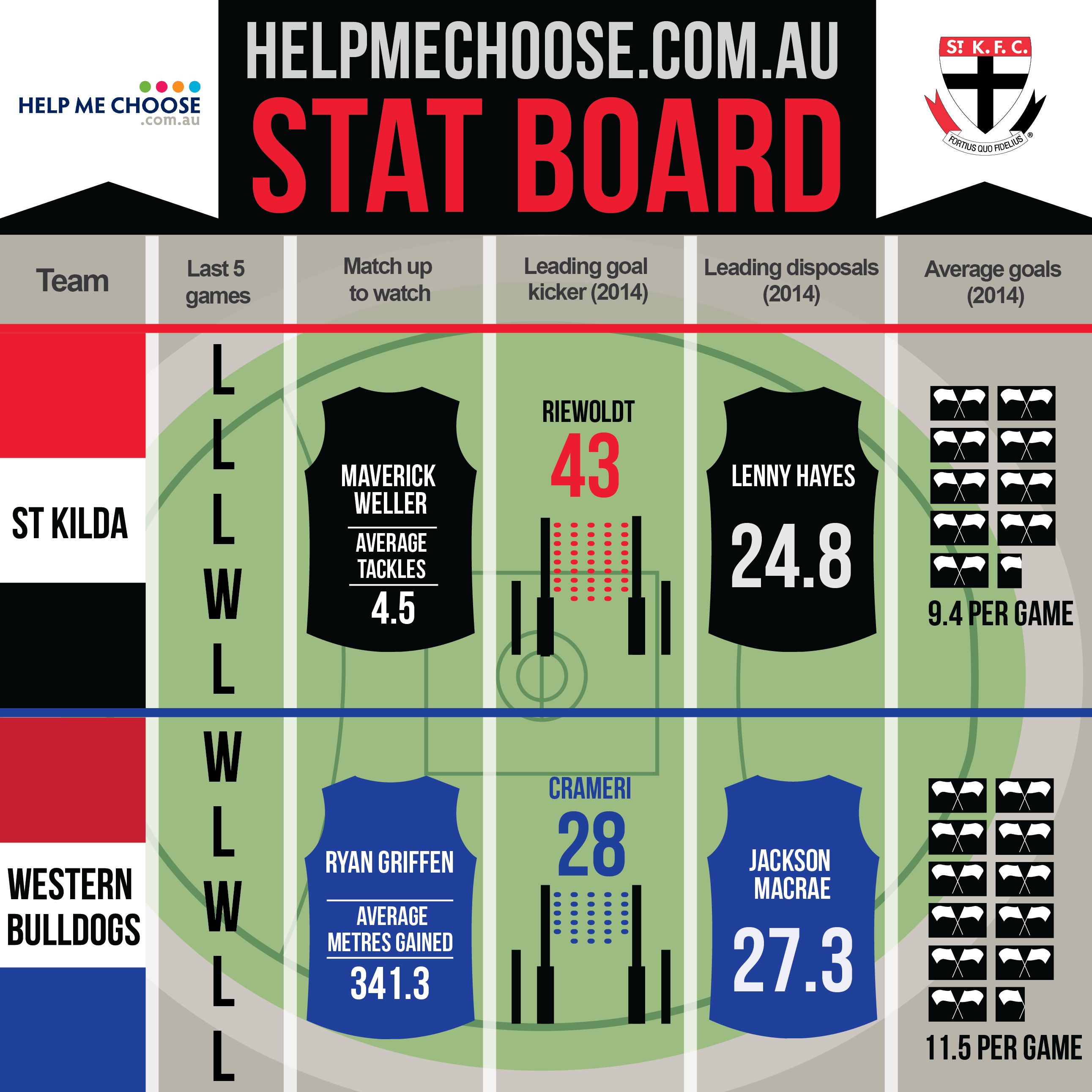But as much as the Dogs will attempt to remain focused on Sunday, the match will be all about Lenny, and for this reason they face an uphill task trying to quell St Kilda’s drive and enthusiasm as the Dockers found out in round 18.